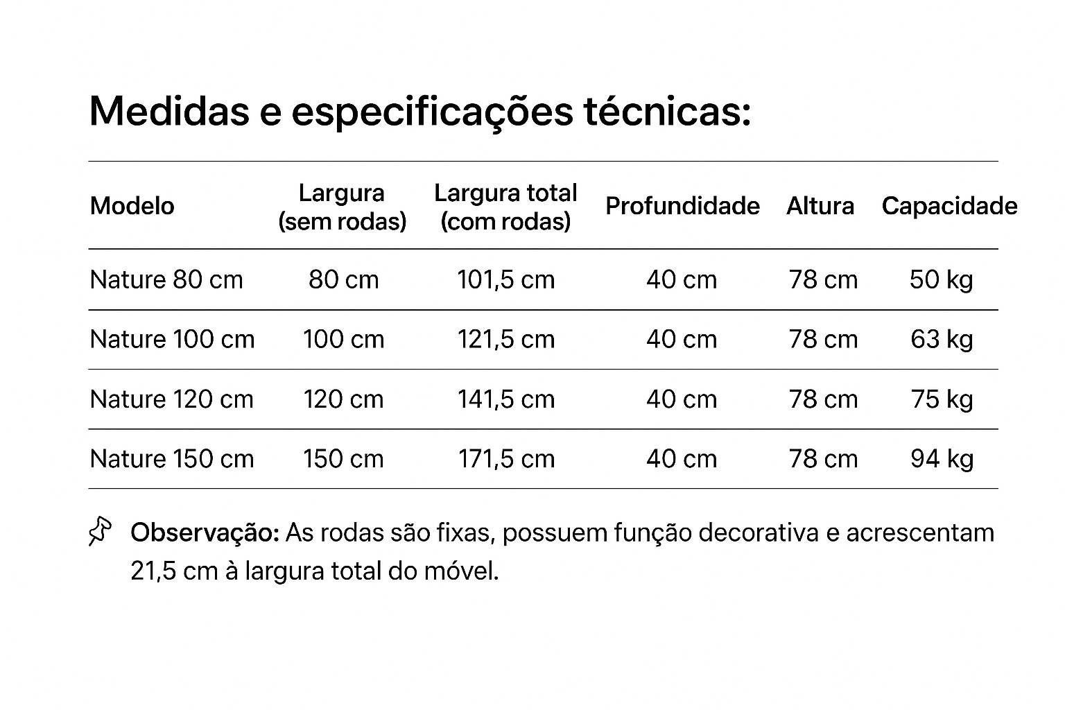 Perfeito para servir e decorar, o Nature oferece funcionalidade e estilo, adaptando-se a diferentes espaços — seja na sala de estar, varanda gourmet ou área de recepção. Com linhas minimalistas e proporções bem equilibradas, é uma peça que se destaca tanto pela estética quanto pela durabilidade.